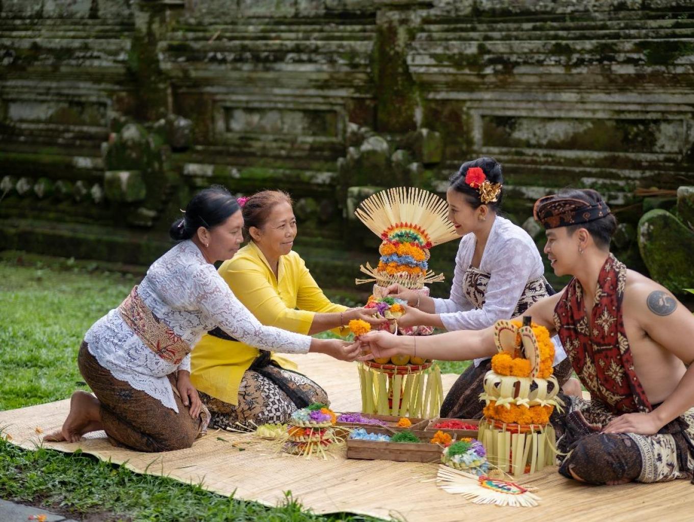 Gebongan bunga adalah rangkaian persembahan agama hindu yang disusun indah dari janur, bunga, dan buah-buahan. Di Desa Penglipuran, wisatawan dapat belajar langsung menyusun gebongan bersama warga, merasakan kekhidmatan tradisi serta makna spiritual di balik setiap rangkaian